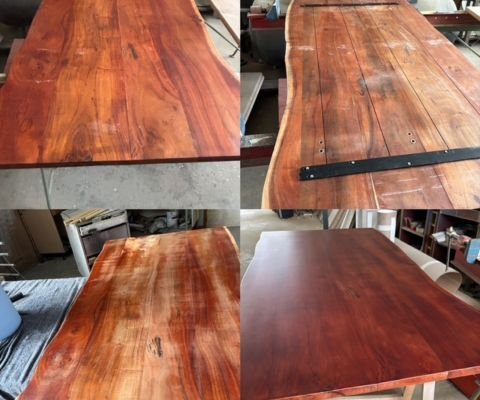 Le plateau transformé : Nous avons remplacé l’ancien plateau en contreplaqué par un magnifique sapin massif, garantissant authenticité et durabilité. Un choix de matière noble pour un résultat à la hauteur.